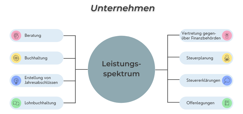 Unser Leistungsspektrum für unsere Firmenkunden ist ihnen vertraut. Es ist wahrscheinlich mehr oder weniger identisch mit der Art von Arbeit, die kleine und mittlere Unternehmen von ihren Steuerberatern zu Hause erhalten.